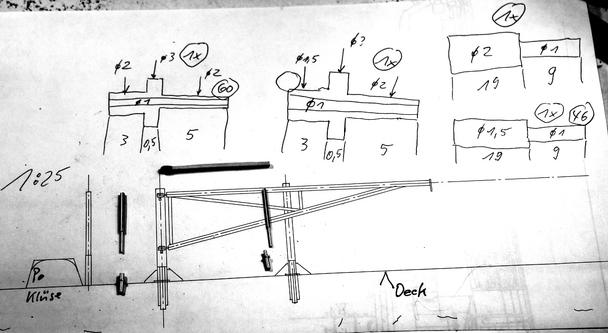 Aus diesem Foto habe ich mit der Grundlage der bekannten Reling-Stützen-Höhe die