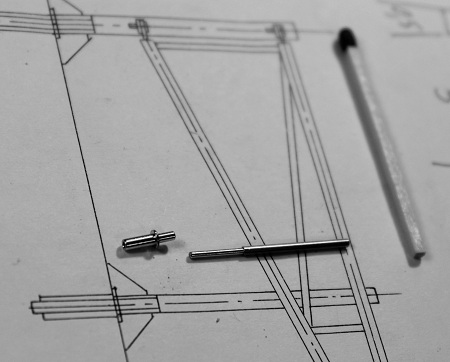 Die Längen für die beiden 0,7-mm-Stäbe konnte ich mit dem Meßschieber genau