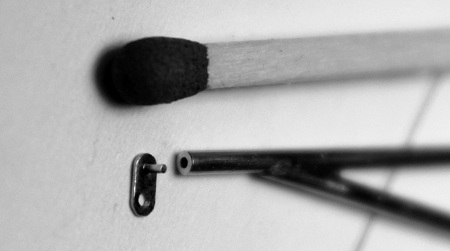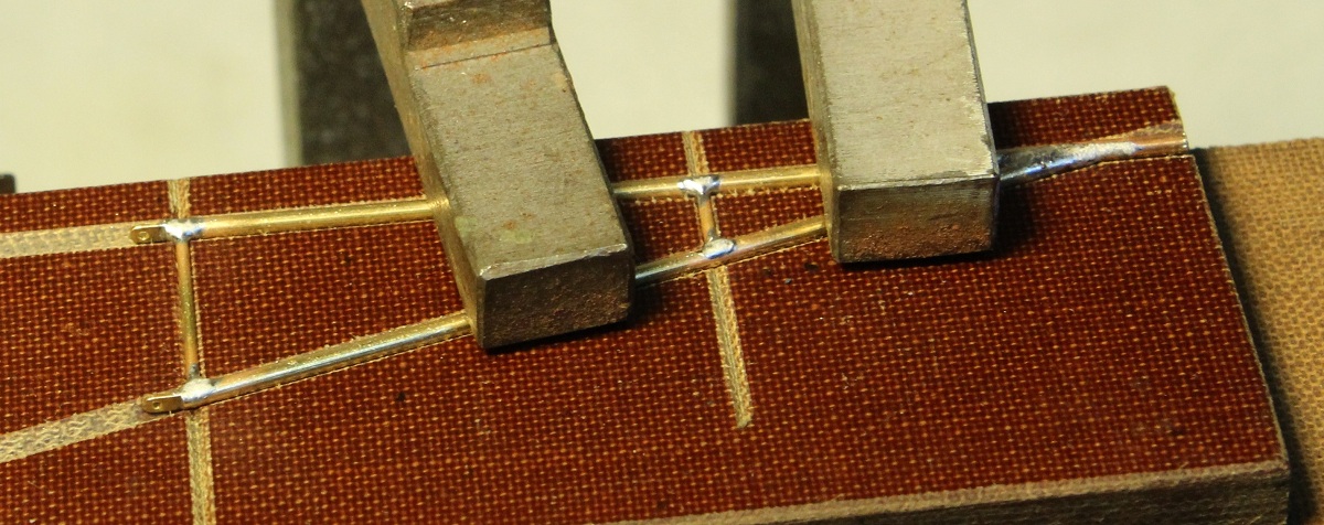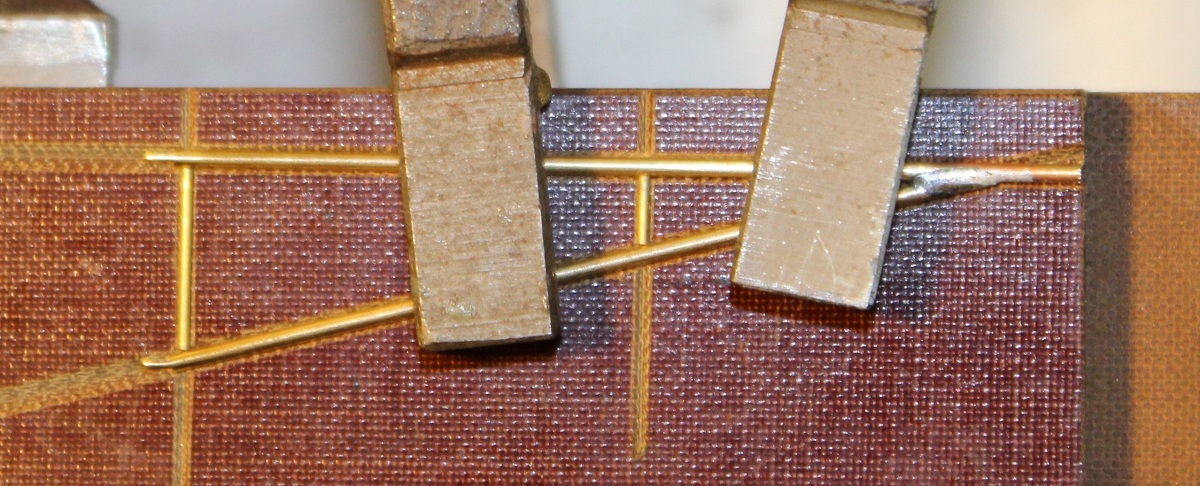 beiden schon eingelöteten dünnen Streben auf. So kommt auch diese exakt "auf