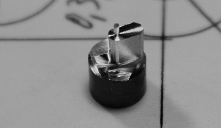 Rundtisch geklemmt, mit einem 45° schräg gestellten Fingerfräser werden die