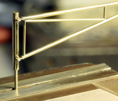 das Einlöten der auf Länge gedrehten Diagonalstrebe liegt das Teil nur auf den