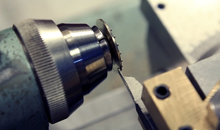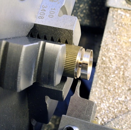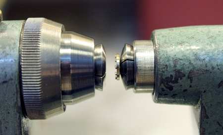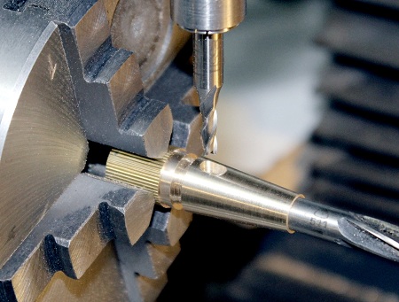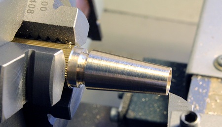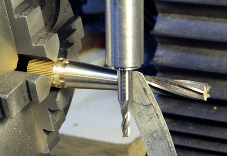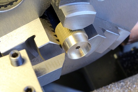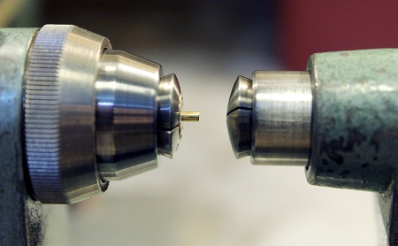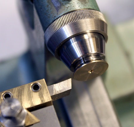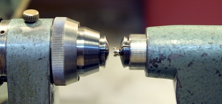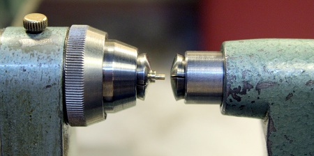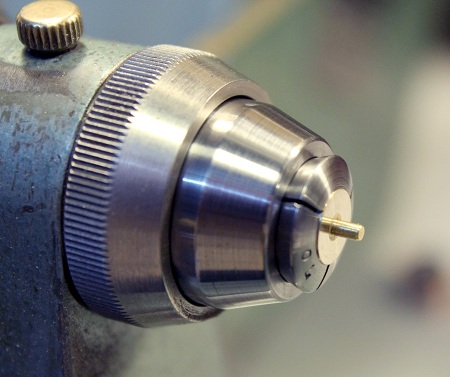 sind. Mit der 1,5-mm-Zange im Reitstock wird das Teil mit seinem Spannzapfen gut