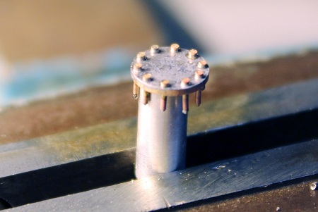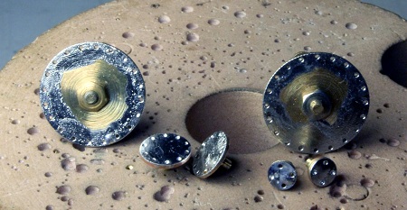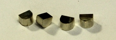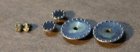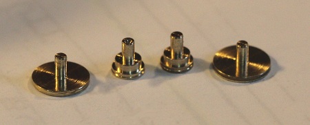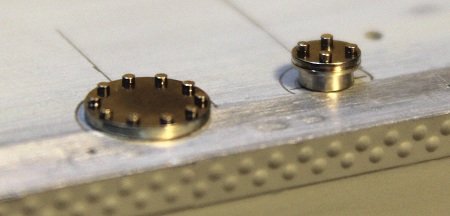 die Schraubenkopf-Imitate (Zapfen-Durchmesser 0,5 mm, Kopf-Durchmesser 0,7 mm)