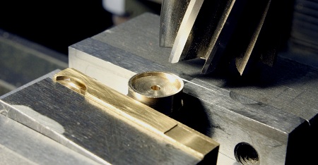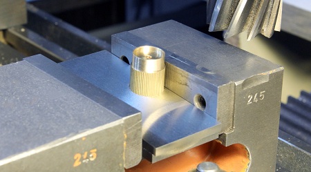 Mitte der Schraubstock-Backen! Nach dem Überfräsen sehr sparsam entgraten.