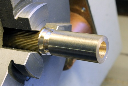 nicht zu viel Masse zu erwärmen hatte, habe ich den gerieften Spannzapfen