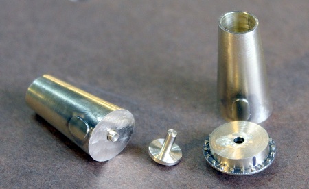 gedreht. Im linken Teil sieht man den 2-mm-Zapfen 1,5 mm ausragen. Der Stift