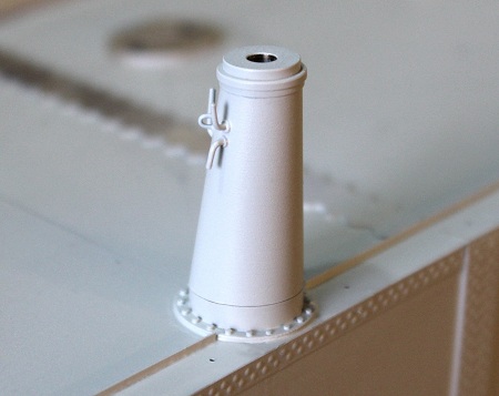 dunkelgrauen Decksfarbe gespritzt und der Rest des Davits hellgrau. Runde