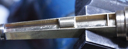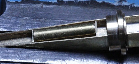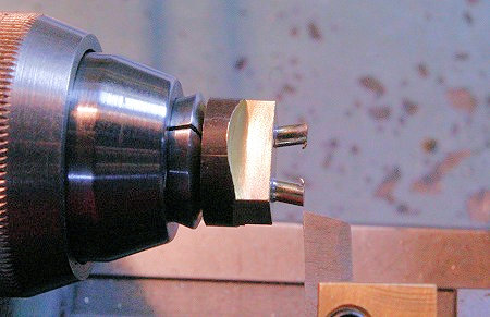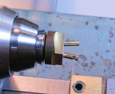 wird das Teil in die Spannzange genommen und eine schmale Fase (rechts im Bild)