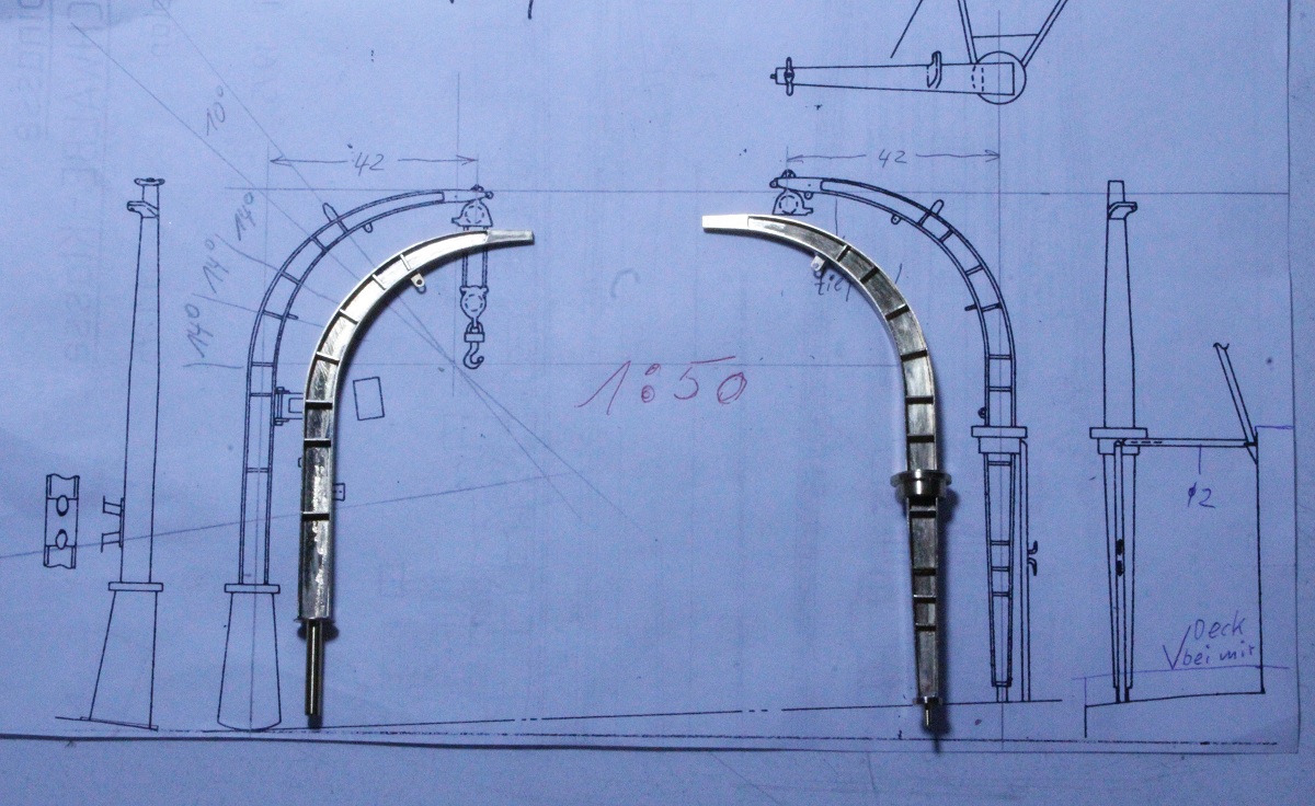 gezurrt werden, (nur) an die hinteren Davits anbringen. Ich drehe aus Alu drei