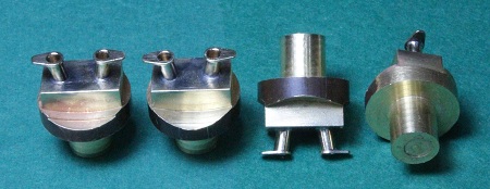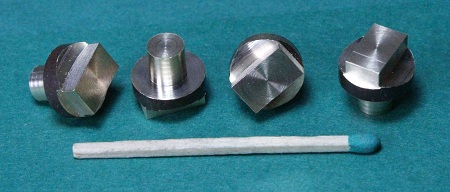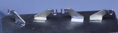 ich einen angedrehten 0,6-mm-Dorn aus Alu (Bildmitte). Ich stecke zwei Bleche