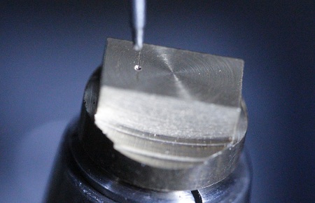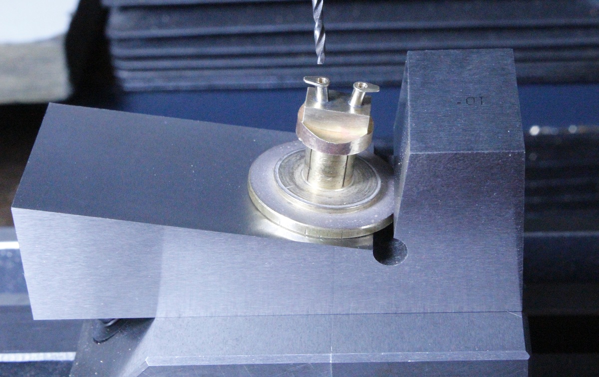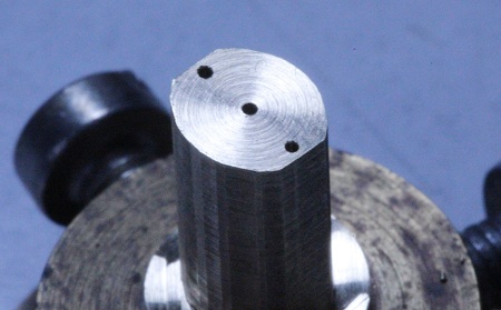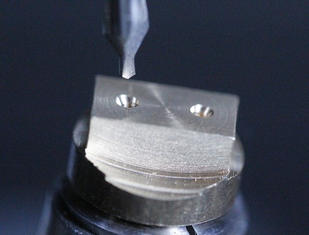 sehen!) mit einem Zentrierbohrer (hier Eigenbau-Mini-Zentrierbohrer) leicht