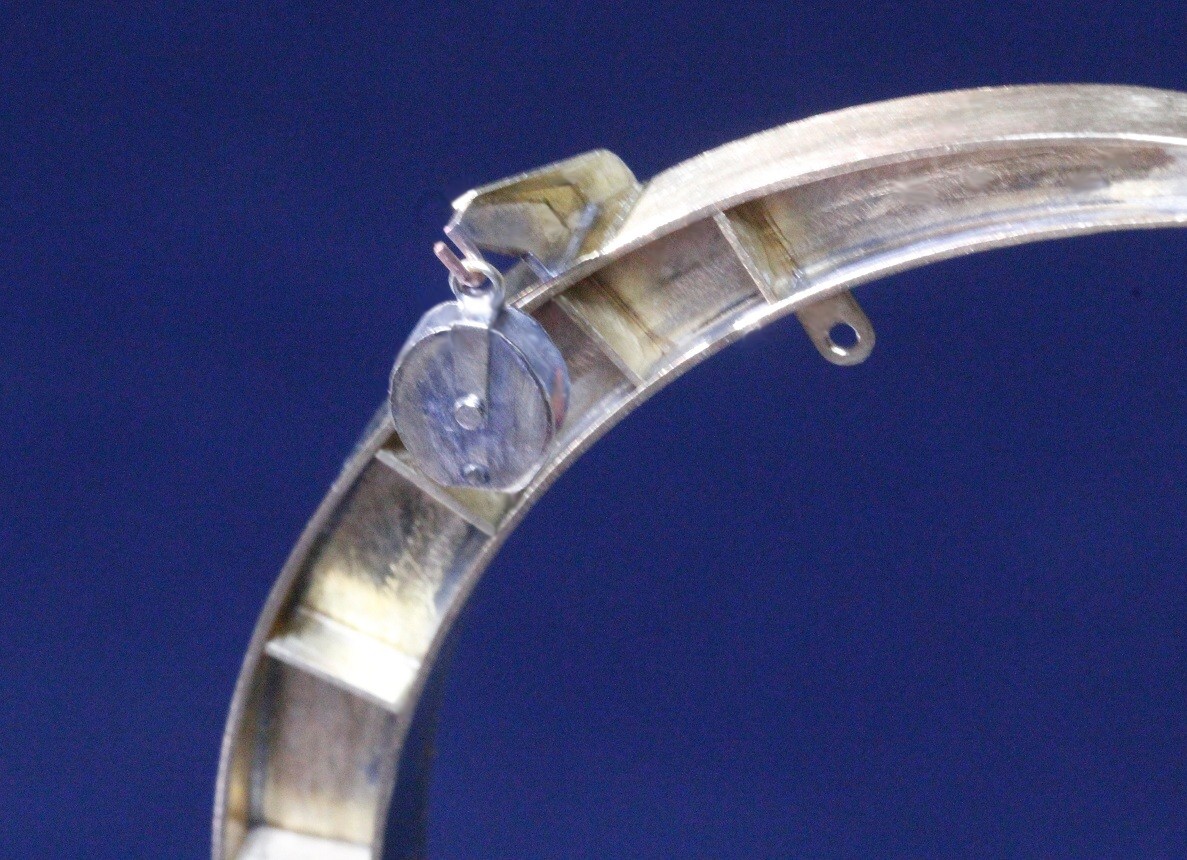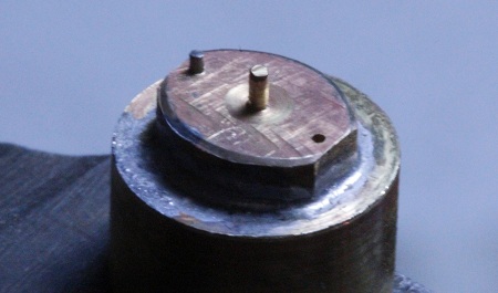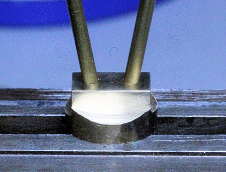 Vertiefung paßgenau eingesetzt und eingelötet, die drei Bohrungen werden