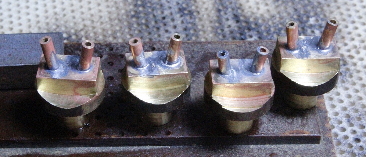 Diese wurden in die Bohrungen gelötet, das überschüssige Lötzinn entfernt.