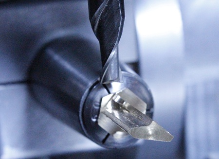 größeren Zentrierbohrer, jeweils zweimal nach einer 180°-Drehung.