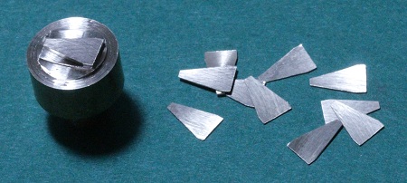 die 0,15 mm dick abgesägten Scheiben vom Profil gelegt und...