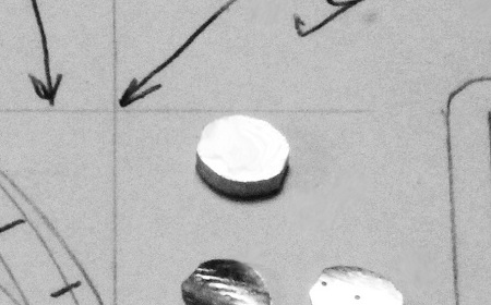 Jetzt werden die Teile mit 2K-Kleber oben auf die Bögen geklebt, jeweils nach