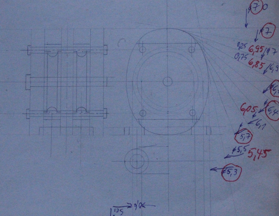 vermessen. Hier sieht man meine 10:1-Zeichnung. Am rechten Rand sind die