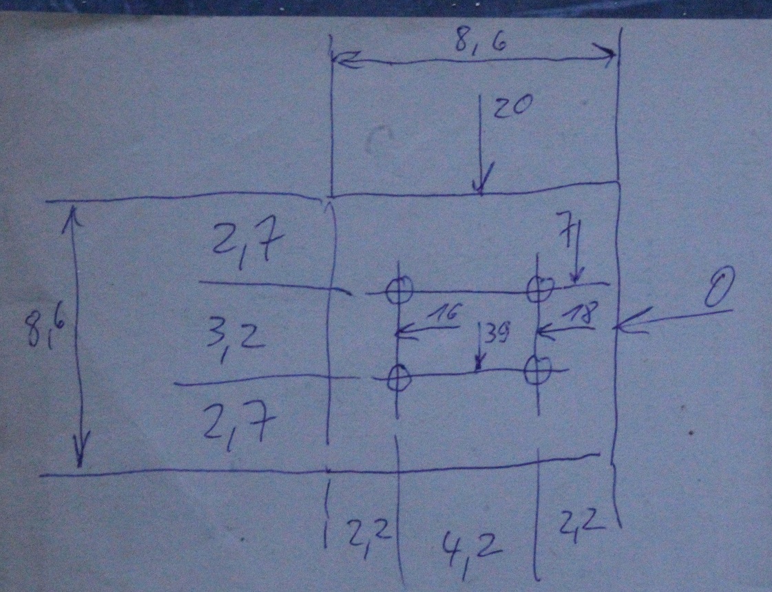 sind die Zahlen "0" und "20" in der Skizze oben. Die Maße 3,2 und 4,2 müssen