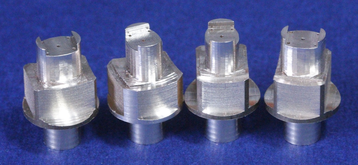 Vier dieser Teile in einer Nahaufnahme nach dem Entfernen (bürsten) des