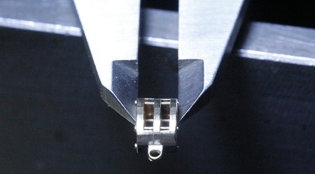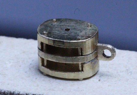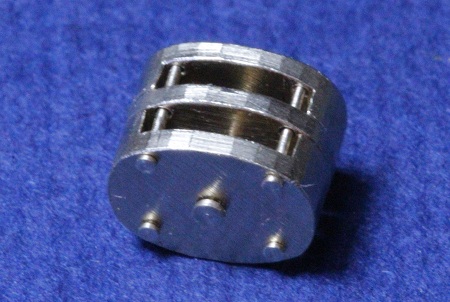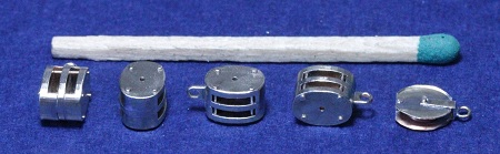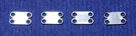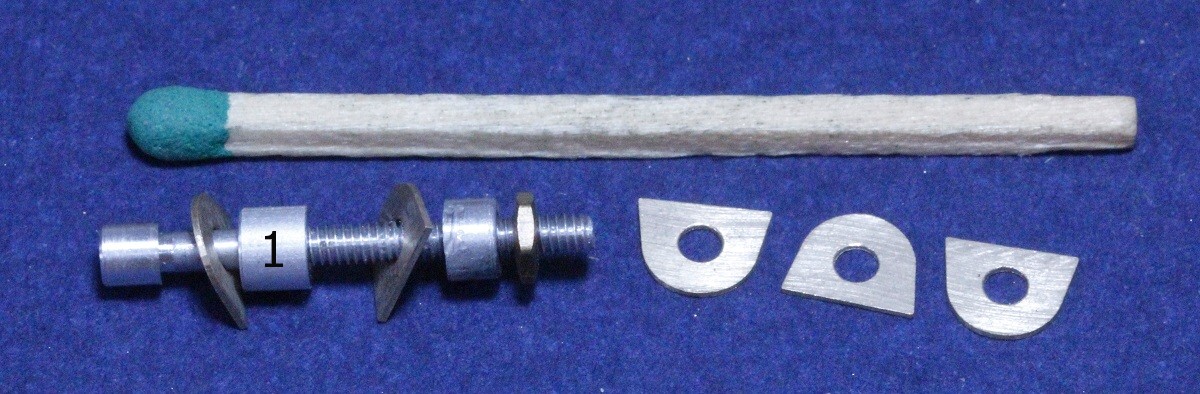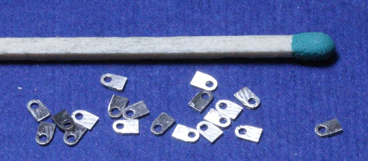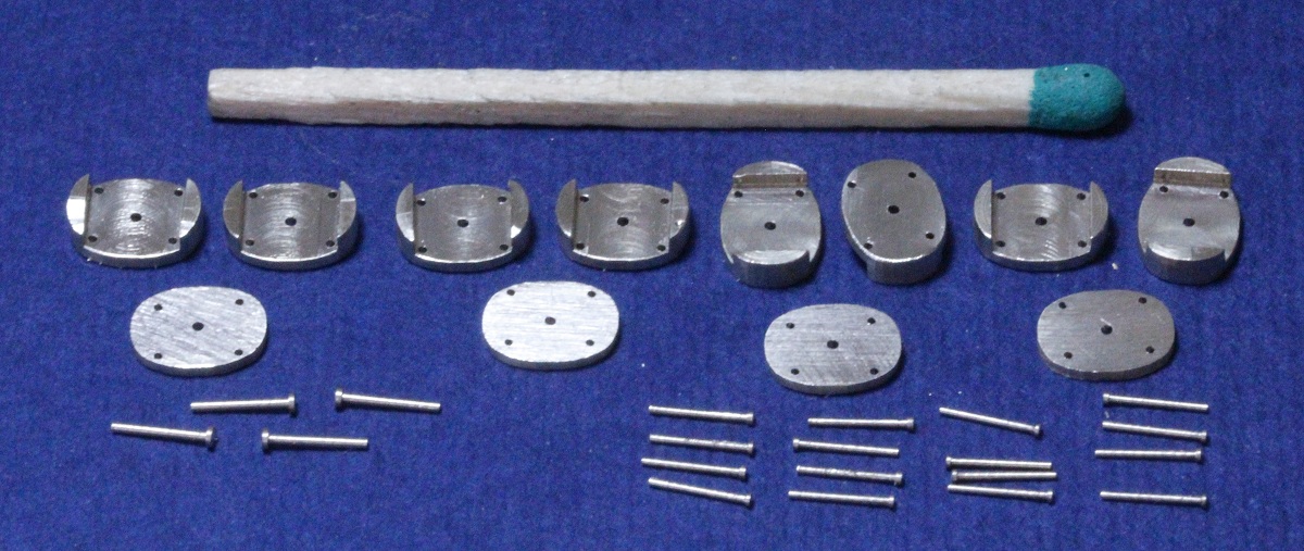 0,8 mm dicken Mittelstücke, unten links die Rollen-Achsen (d = 0,5 mm), unten