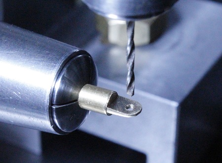 0,45-mm-Wendelbohrer (mit 1,2-mm-Schaft!) in die Nut hinein.