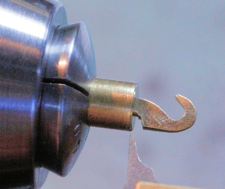 1,2-mm-Fingerfräser die innere Schräge der Hakenspitze gefräst (0,1-mm-Späne!).