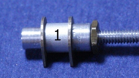 Eine M2-Alu-Schraube und ein 3,2 mm langes Abstandsstück (1) dienen beim