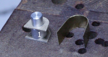 Drehteile mit drei 0,65-mm-Längsbohrungen, U-Drahtstücke aus 0,6-mm-Ms-Draht,
