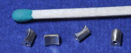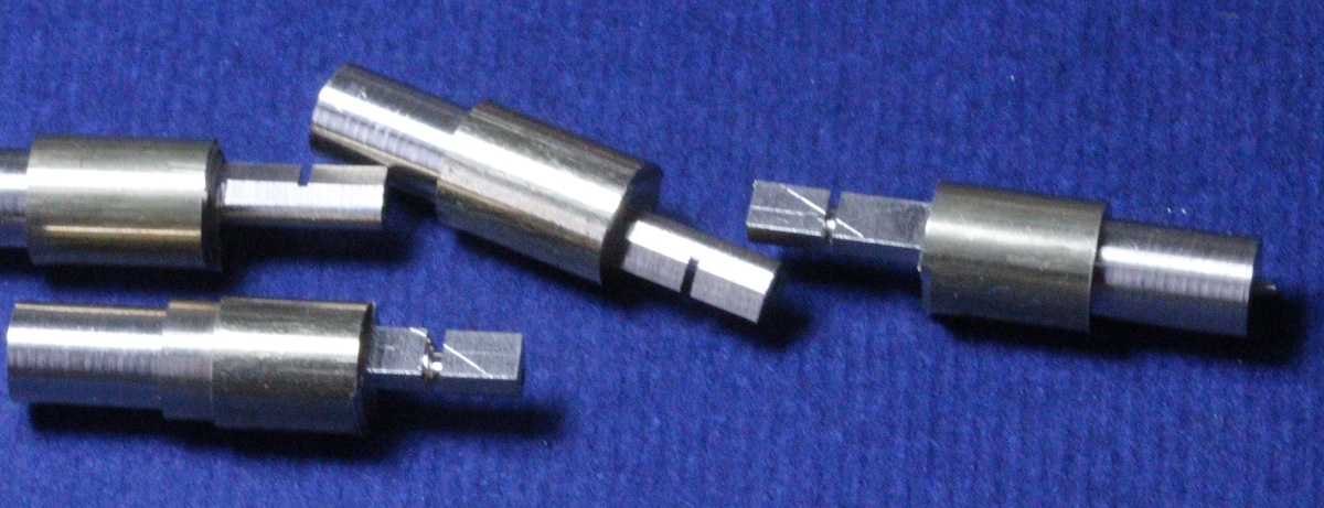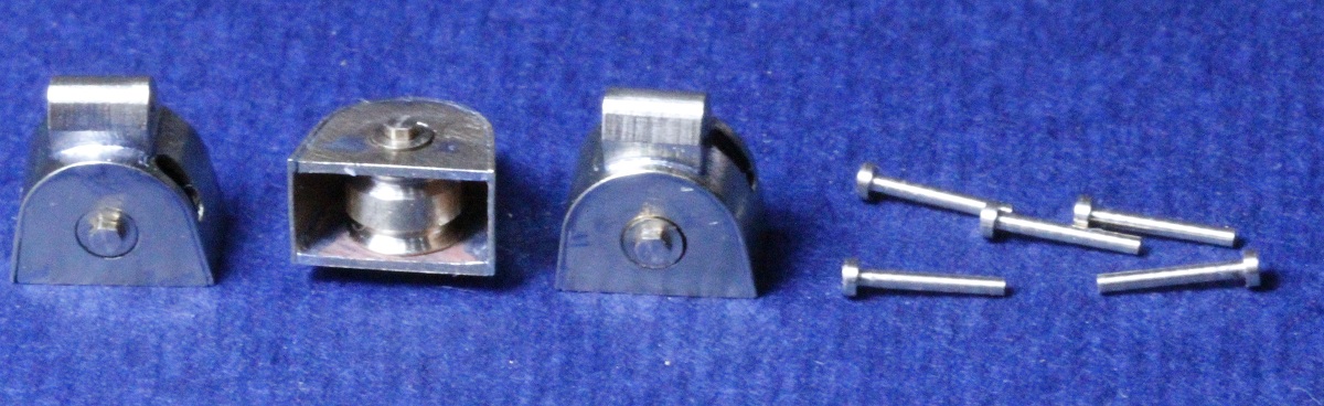 links nach rechts: Seilrollen, Achsen und Schraubenkopf-Imitate.