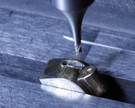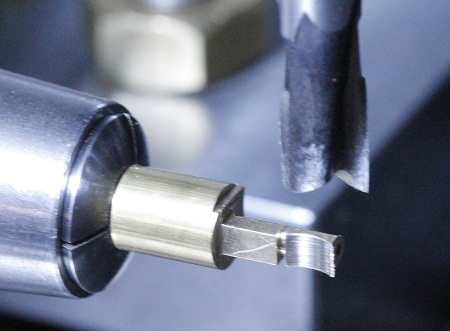 Part des Bootsläufers in den Block fährt, erhält mit einem 1-mm-Fingerfräser ein