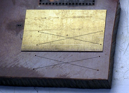 (Foto anklicken) Das Blech wird als Bohrschablone an den