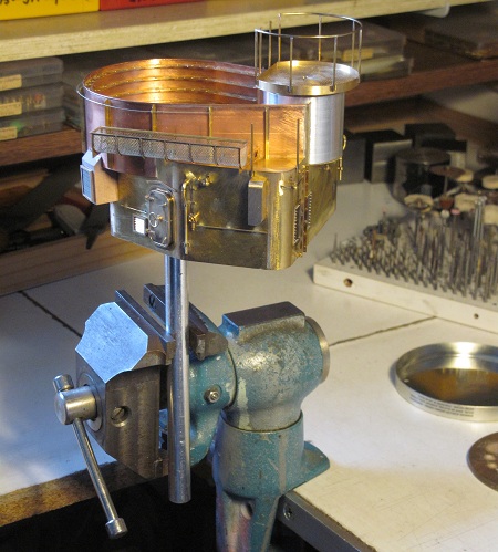 anklicken) Der obere Handlauf aus 1-mm-verzinnten-Cu-Draht wurde um einen
