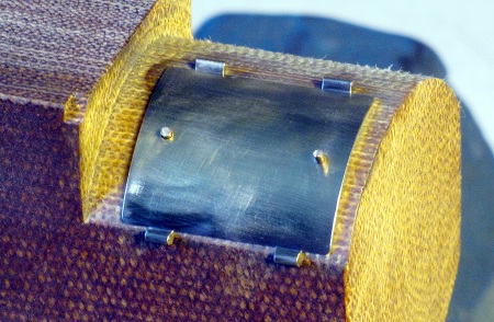 Blechstreifen abgedeckt, die Scharniere noch mit Blechstücken ergänzt und eine