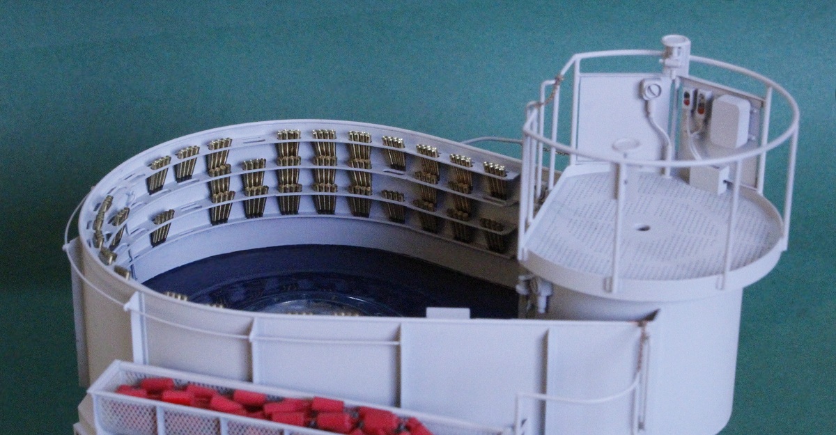 4er-Patronenbündel für den 40-mm-BOFORS-Zwilling. Nicht alle Plätze sind belegt,