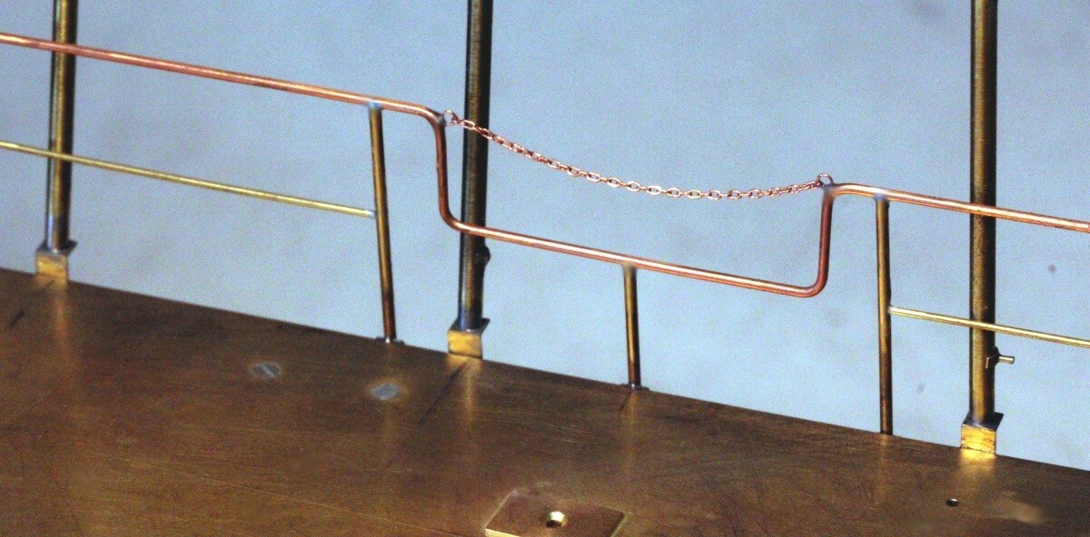Die hintere Stirnseite vom achteren Deckshaus. Die Ketten müssen hier zur