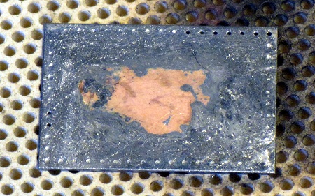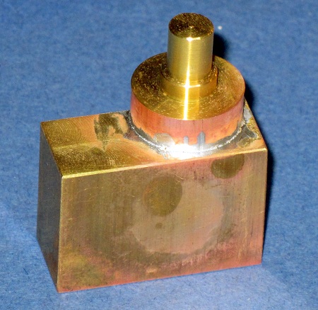 mit Lötwasser befeuchtet und auf Flußtemperatur erhitzt (Propangas-Brenner oder