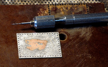1,5-mm-Abständen gebohrt, dabei gering tief auch in die Pertinax-Unterlage.
