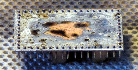 gesteckt, es liegt dabei auf der mitgebohrten Pertinax-Unterlage.