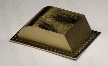 Messing-"Steinen", sodaß die Imitate frei nach unten hängen können. Und das tun