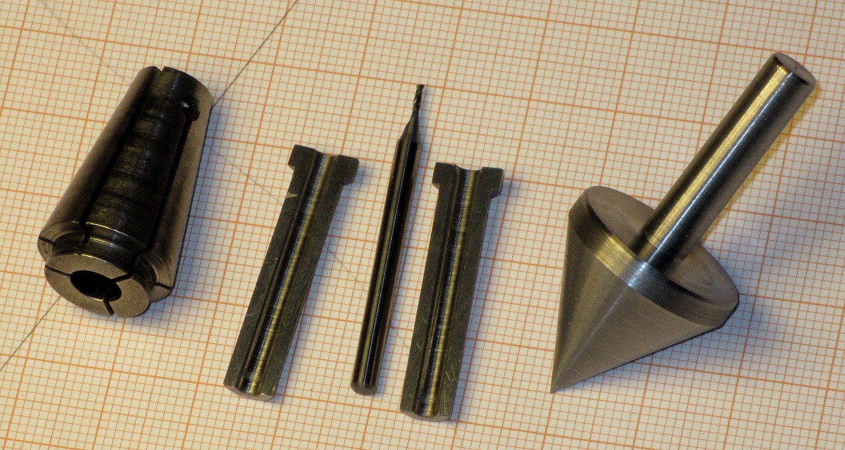 0,6-mm-Vollhartmetall-Fingerfräser (VHM) gekauft (Mitte). Damit ich diesen Fräser mit