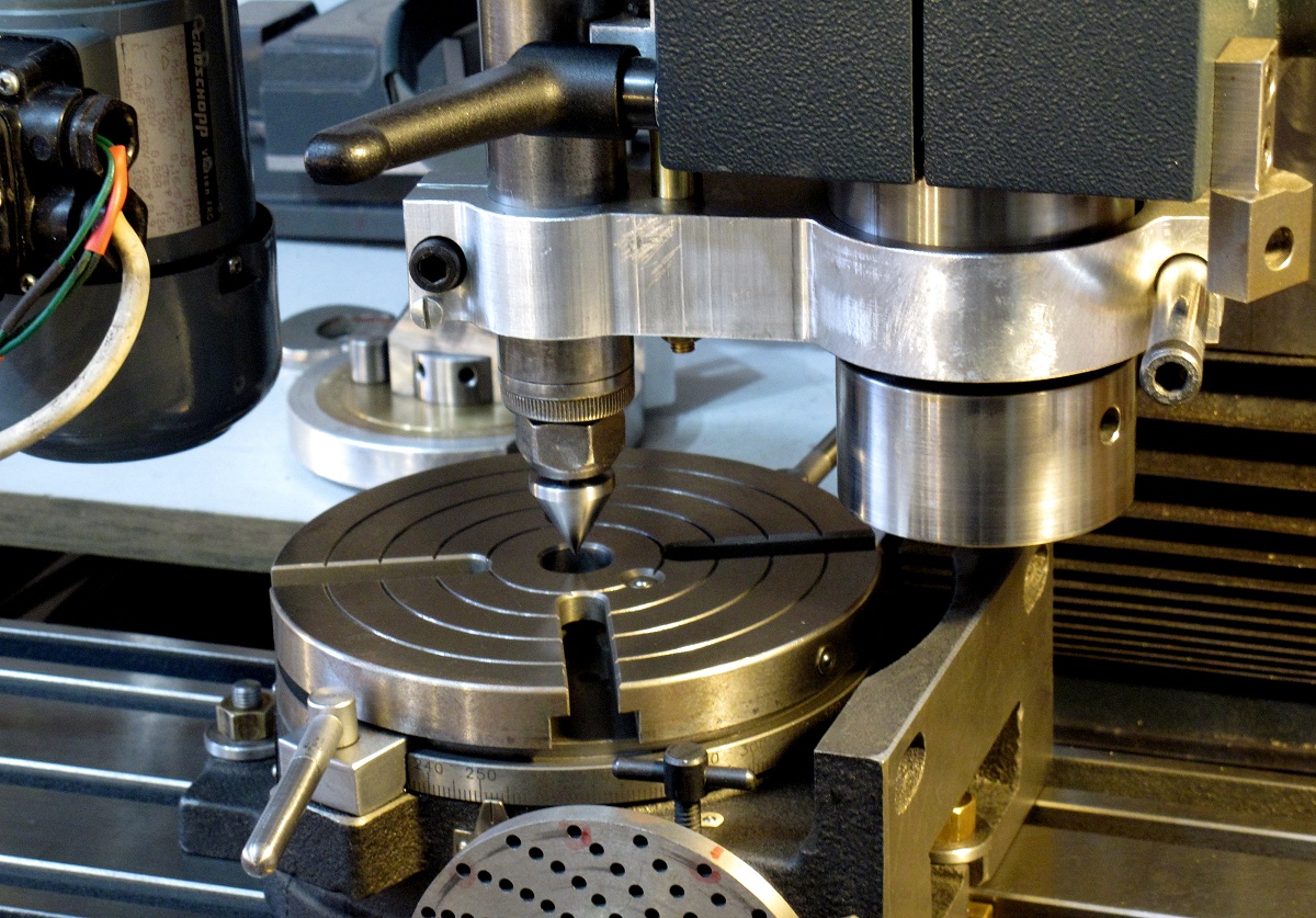 angezogen. Die Zentrierspitze wird langsam in die Mittenbohrung des Rundtischs