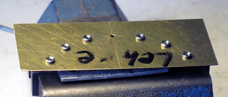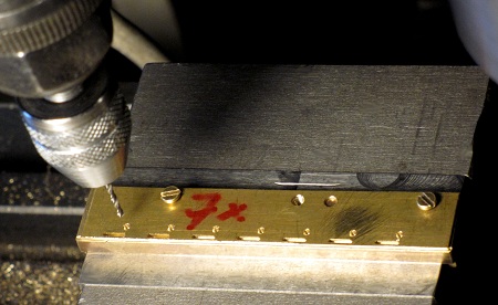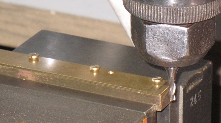 zuerst drei 1,6-mm-Durchgangs-Bohrungen (22,5-mm-Abstand) gebohrt. Oben wurde
