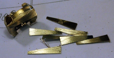 geteilt!) werden zwei 0,3-mm-Ms-Blechstreifen mit Übermaß ausgesägt.