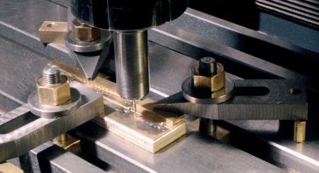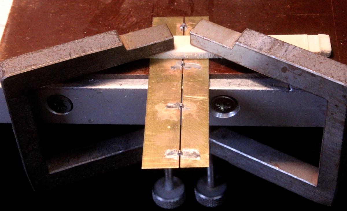 beim Zusammenlöten der Teile nicht verrutschen kann, wird er mit zwei C-Klammern