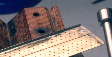 zwei 0,4-mm-Löcher bis in die Unterlage gebohrt... (Vorzentrieren mit einem