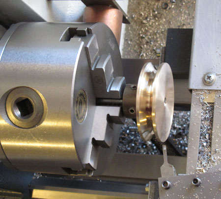 (Foto anklicken) Das Riemenrad für den Antriebsmotor wird