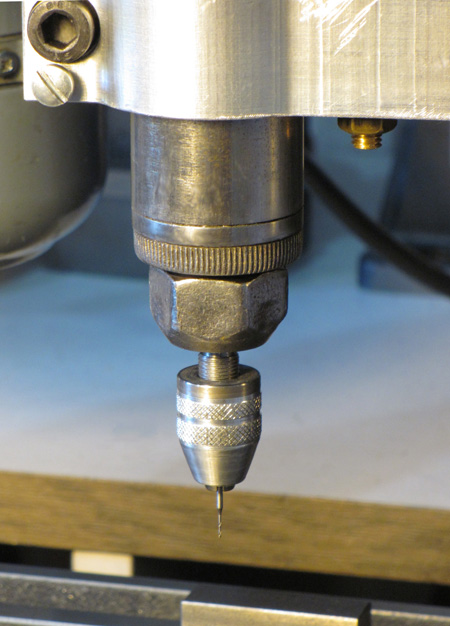 kleines Bohrfutter gedreht. Er hat einen langen 6-mm-Zapfen für das Spannen in