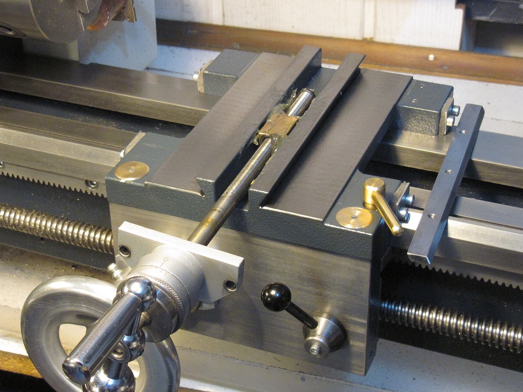 etwas außer Mitte, damit man keine Probleme mit der Spindel des Quersupports