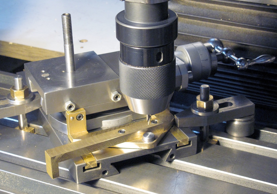 ...durch Buchse und Schlitten 3-mm- vorgebohrt, 3,8- und 3,9-mm fertiggebohrt.