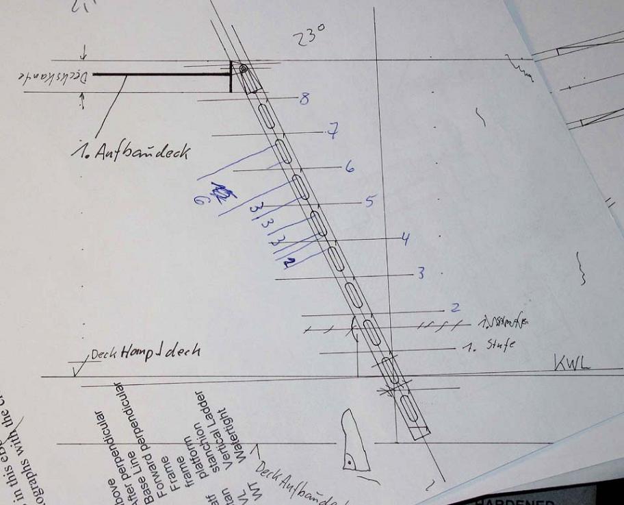 habe ich die Maßverhältnisse und die Schräglagen der Decks abgenommen. Danach